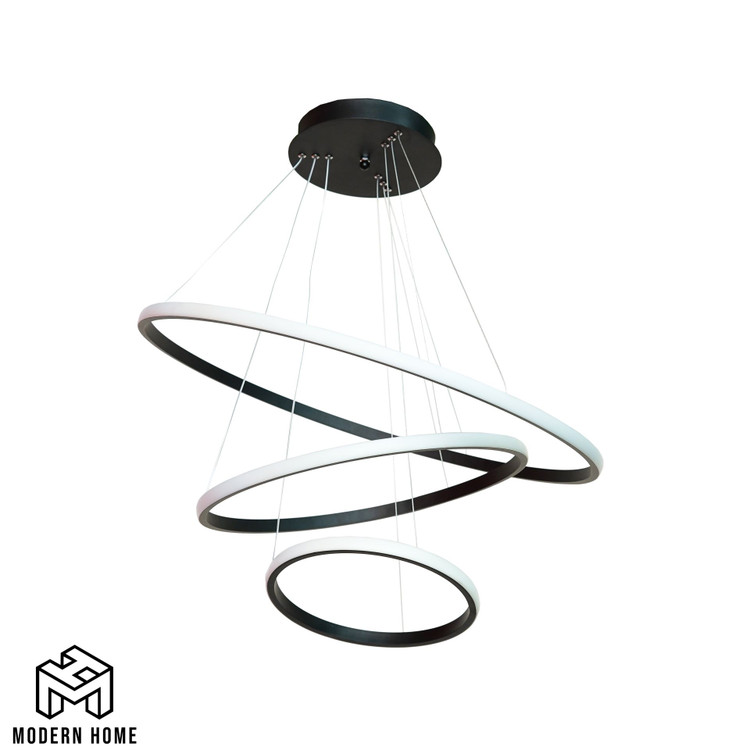 لوستر مدرن سه حلقهای – هالهای از نور و مدرنیتهلوستر سه حلقهای مدرن، با طراحی خلاقانه و هندسی، نمادی از زیبایی مینیمال و نوآوری در روشنایی است. این لوستر معلق با حلقههای درهمتنیده سفید و مشکی، فضایی پویا و هنری ایجاد میکند؛ ایدهآل برای پذیراییهای بزرگ، سالنهای نشیمن، اتاقهای غذاخوری یا فضاهای تجاری شیک. بدنه مشکی مات آن، با روکش مقاوم، جلوهای لوکس و ماندگار به سقف میبخشد و به راحتی با دکوراسیونهای معاصر هماهنگ میشود.ویژگیهای کلیدی:طراحی سه حلقهای منحصربهفرد: حلقههای LED دایرهای در اندازههای متفاوت (قطر تقریبی30، 70۰ و ۵۰ سانتیمتر)، با ترکیب رنگ مشکی مات برای افکت نوری سهبعدی و جذاب.